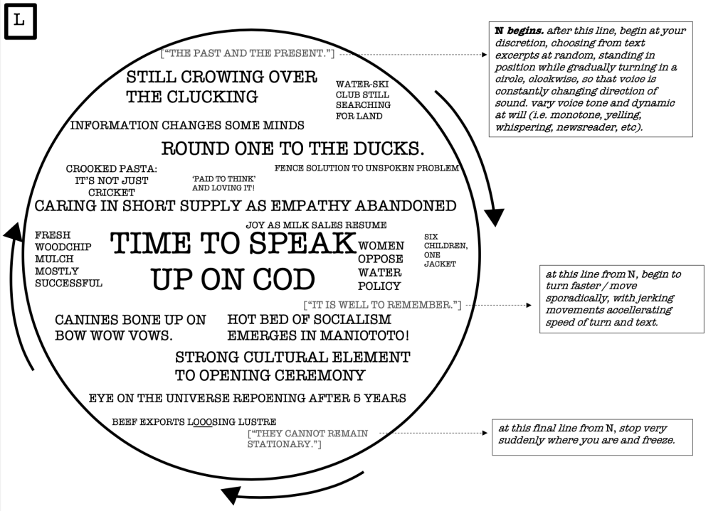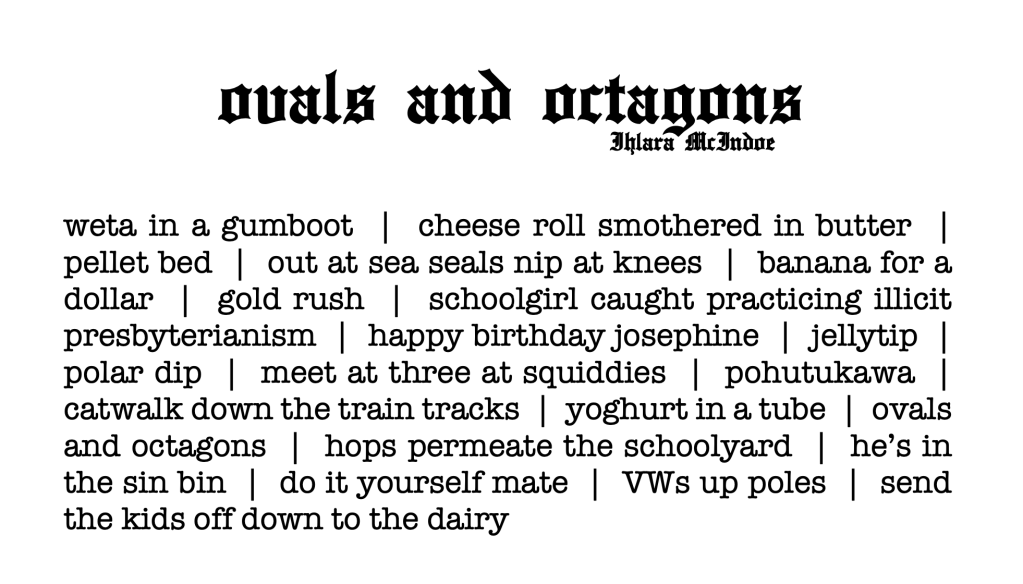 Taking its inspiration from the uninspirational, this work is an exploration of the ordinary. I am interested in the vitality of the apparently uninteresting, the significance of the seemingly banal, the beauty of the reputedly tacky. Part sound-art, part theatre, part poetry, this work is a coming of age reflection on growing up in an extraordinary ordinary little city at the bottom of the world. A study of rhythm through the bread from my favourite bakery, a sonic mosaic crafted from years of Otago Daily Times headlines, a lesson on abstractionism from the seagull droppings on Robbie Burns’ head: these are just a few of the Ōtepoti offerings explored in the work, and which the foundation of my identity as a Dunedin artist is built upon.