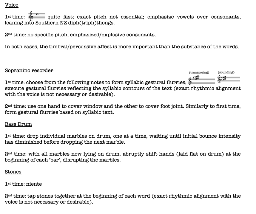 This is a work deeply rooted in a sense of place, which draws on archival materials, homemade and toy instruments, and fragments of individual and collective memories, to explore themes of Scottish colonial settler heritage and identity in Southern New Zealand.